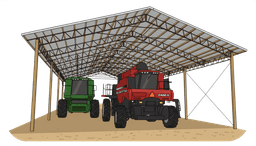 Open-sided structures with a full roof — maximum ventilation, natural light, and fast construction. Ideal for equipment storage, RV shelters, and covered workspace.