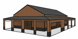 Custom pole barn kits and installation for horse barns, equipment storage, RV shelters, workshops, and agricultural buildings.140+ MPH rated ·