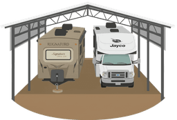 Covered, open storage for RVs, boats, and recreational vehicles — easy pull-through access.